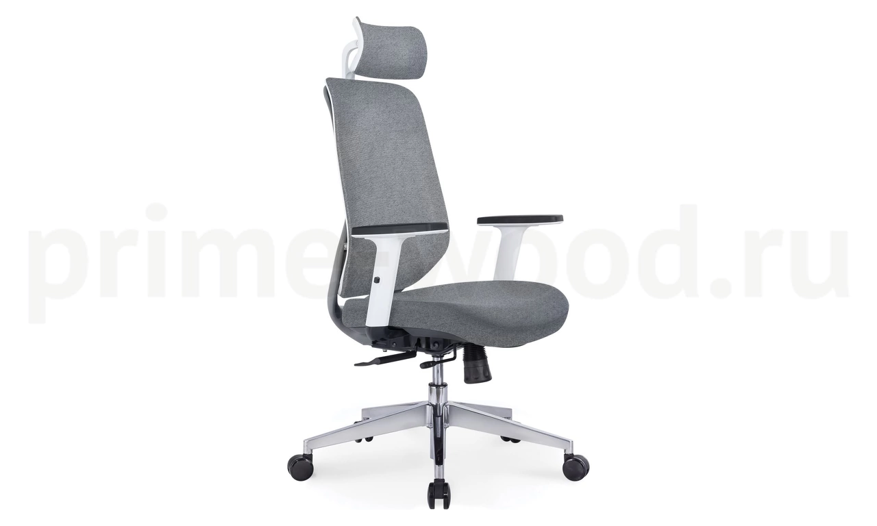 Кресло руководителя / Имидж gray 2 / белый пластик / серая ткань